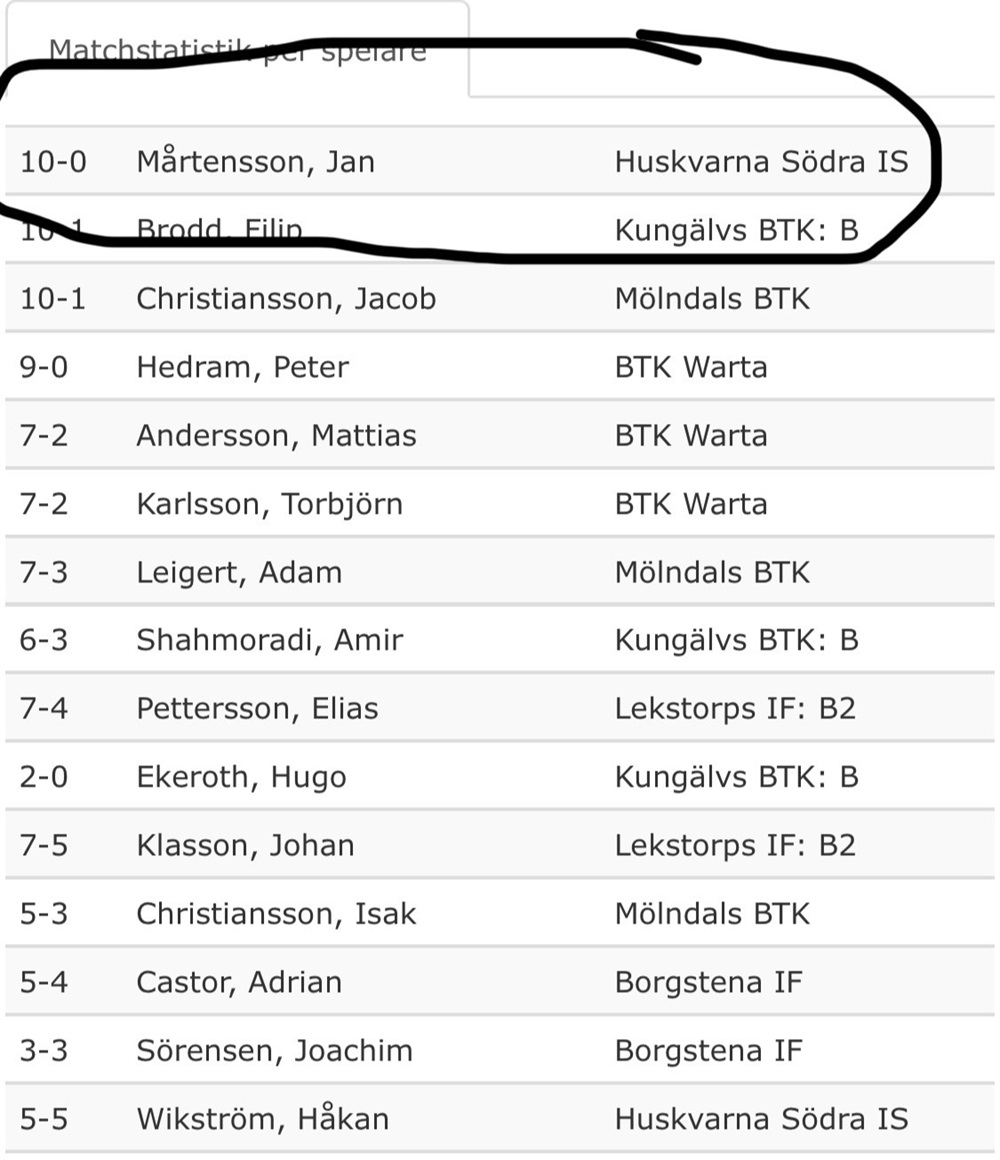 Därmed parkerar HSIS på en fjärdeplats i tabellen inför nästa sammandrag som avgörs hemma i Huskvarna Sporthall 15/11. Värt att nämna förutom Jannes urstarka singelkvot är även Huskvarnas dubbelkvot - av åtta spelade dubblar har vi vunnit sju!